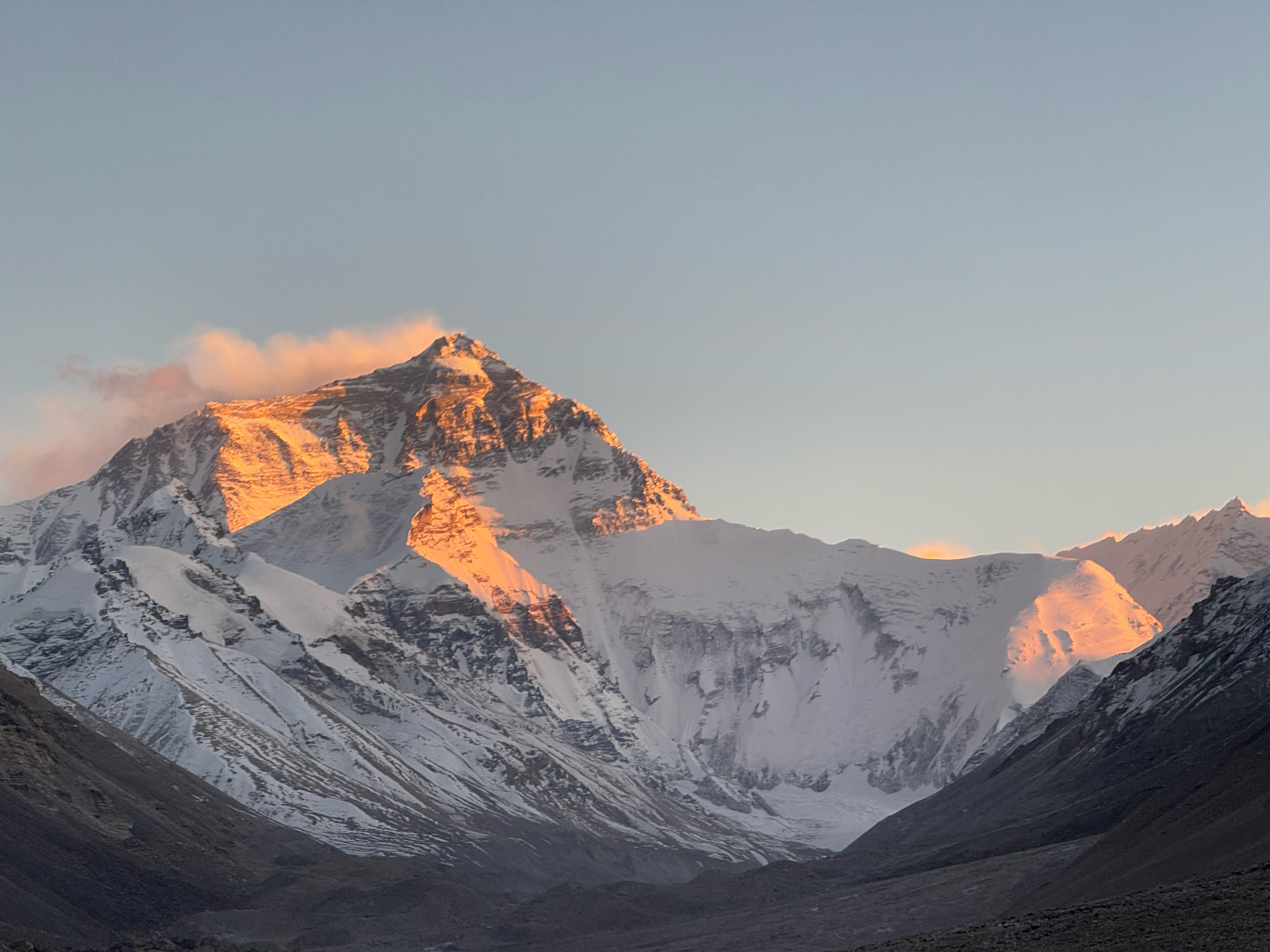 珠穆朗玛峰日照金山景观。新华社记者 邱星翔 摄